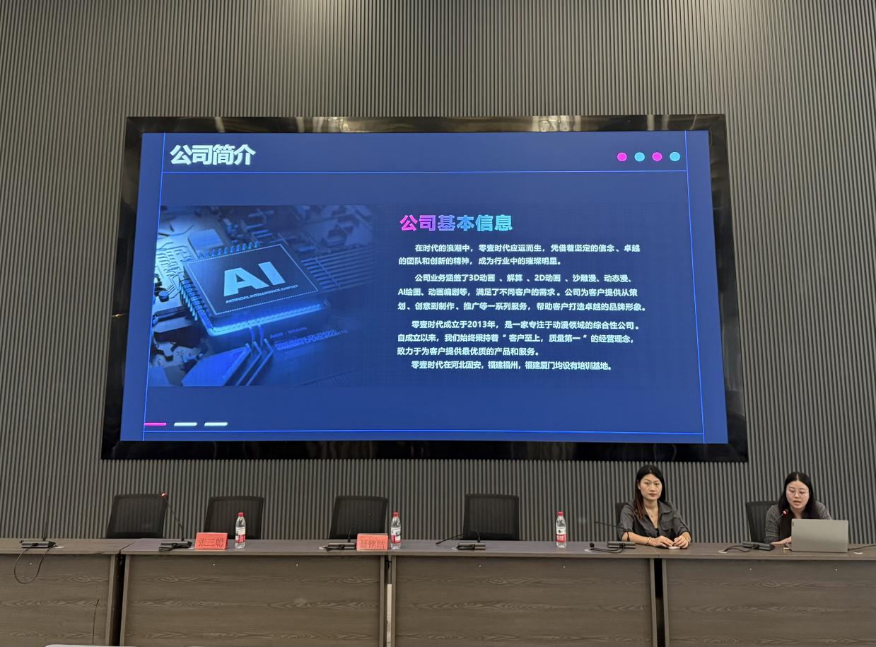 首先,企业代表介绍了公司概况、业务优势及二维动画制作的全流程,包括前期美术设计、中期动态制作及后期优化,并展示了3D卡牌、游戏场景等绘本案例,让学生直观感受公司项目成果。其次,企业还通过图片和视频展示了福建与河北两地的办公环境,并详细说明薪资福利待遇。最后,企业代表与学生进行了一对一交流,耐心解答职业发展、岗位要求等问题。