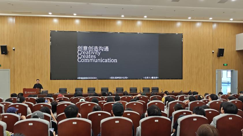 随后,回头是岸设计公司创始人戴佳岸老师作了关于《创意创造沟通》的主题分享,谈到视觉设计中“传达”与“沟通”的本质差异:对视觉设计从业者而言,完成“视觉传达”仅是基础,即通过视觉方式传递信息;而优秀的设计应实现更深层次的“视觉沟通”——确保信息不仅被传达,更能被受众有效接收、理解并记忆。在他看来,设计并非目的,沟通才是本质;创意,则成为实现有效沟通的桥梁。
