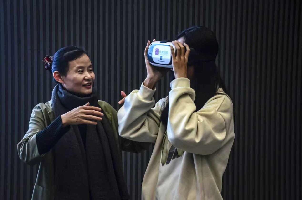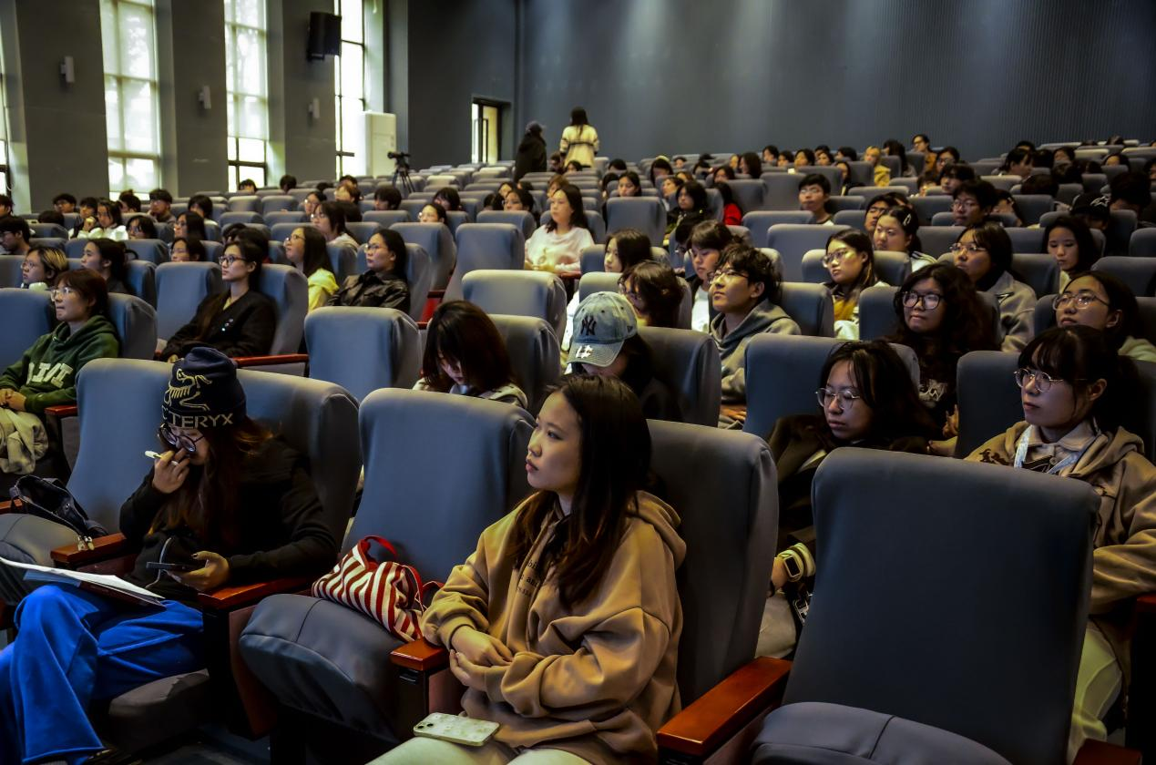 讲座现场互动氛围热烈,邹安老师针对师生提出的“数字技术如何适配传统创作”“跨界作品的商业化落地”等问题,结合行业前沿案例逐一解答,并且邀请同学们上来尝试VR给人带来的身临其境的魅力,当前数字视觉行业应用场景日益广泛,从影视特效、游戏设计到文旅装置,跨界人才正成为市场刚需,鼓励学生保持好奇心,主动突破学科边界,培养“技术+创意+实践”的综合能力。