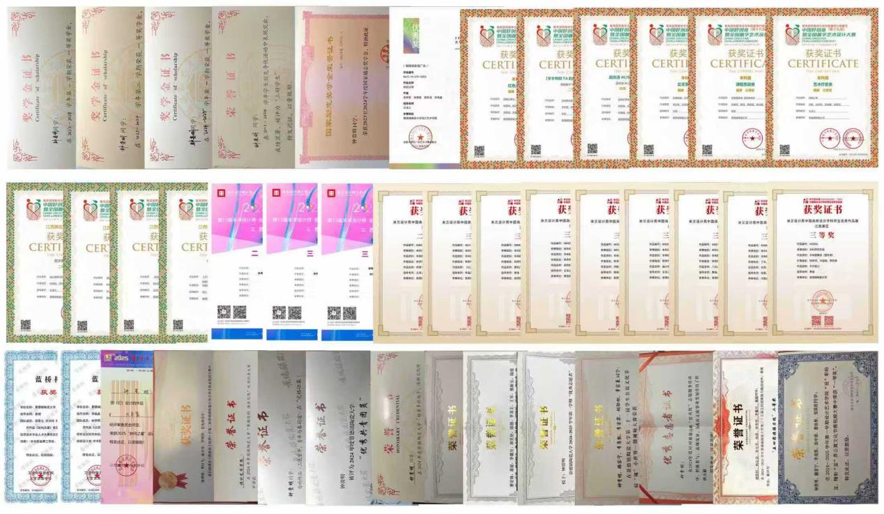 他注重学以致用,积极将专业知识转化为创新成果。在“中国好创意”等多项国家级、省级重要赛事中屡获佳绩,累计获奖50余项。每一项荣誉的背后,都是他对数字媒体艺术的热爱与坚守,见证着他在专业道路上的稳步成长与持续突破。