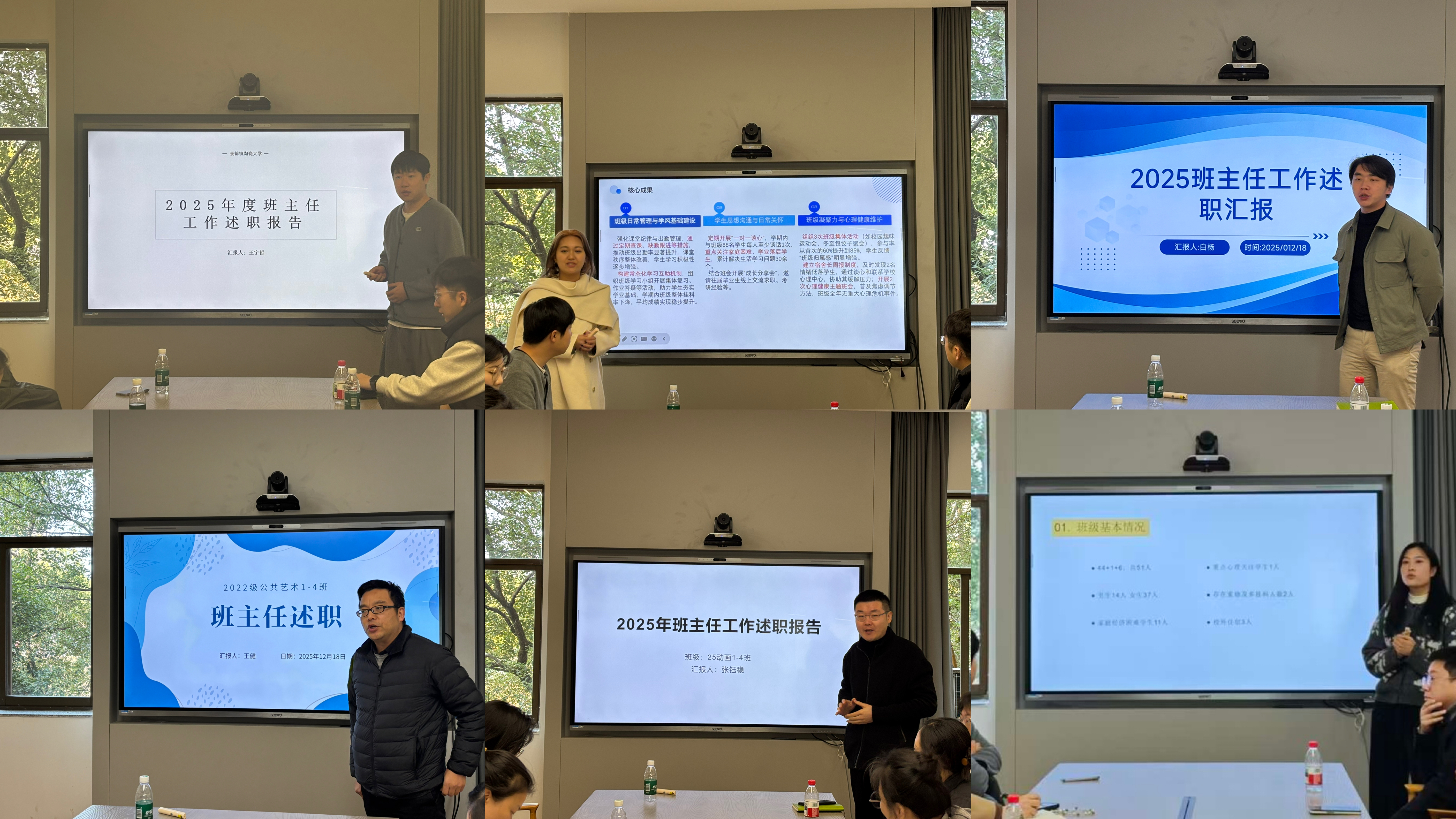 述职环节中,各位班主任紧扣立德树人根本任务,结合自身工作实际,从思想价值引领、党团班级建设、学风建设、学生日常事务管理、心理健康关怀、就业创业指导等多方面展开详细汇报。大家不仅展示了年度工作的“亮点清单”,反映育人实践中的新进展、新成果,也坦诚剖析了当前面临的挑战与不足,并提出了下一步改进举措。