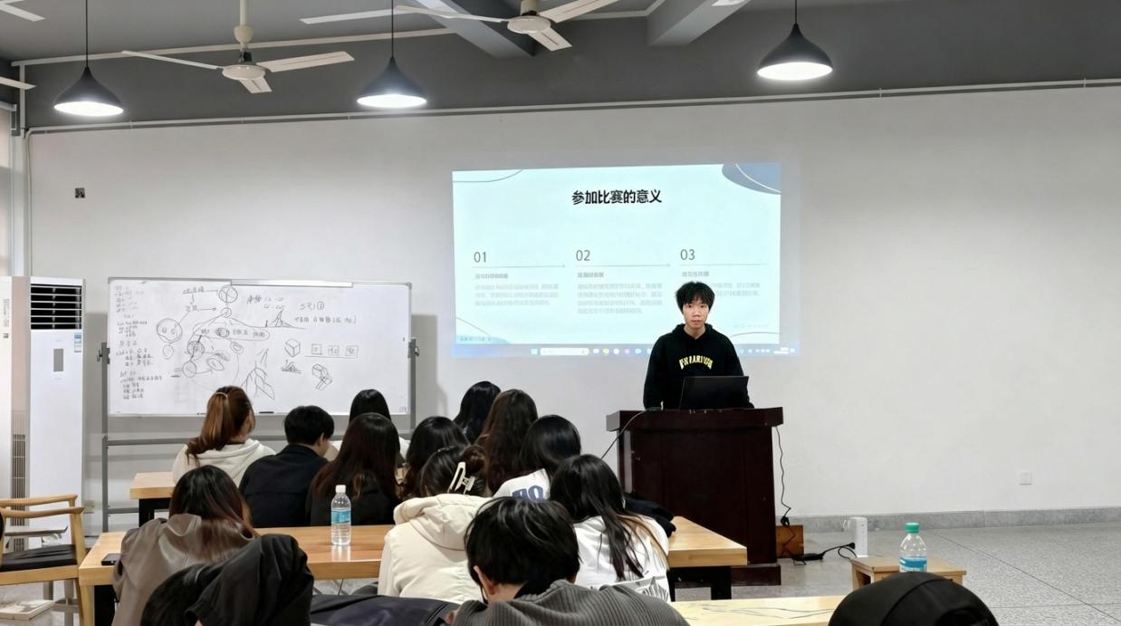 在不断提升自我的同时,饶伟强始终不忘将所学所感回馈集体。作为班长,他主动关心同学,积极搭建交流平台,营造互帮互助的学习氛围。无论是设计思维的启发、软件技能的辅导,还是赛事策略的解析、团队协作的指导,他都倾囊相授,耐心陪伴同学们共同成长。在他的带动和帮助下,不少同学逐步明晰了专业发展路径,在实际创作中取得了突破。在他看来,“设计的价值不仅在于个人成就,更在于能够助力更多人看见设计的力量。”这份真诚的分享与奉献,也让他的大学生活超越了个体成长,成为一段在集体中发光发热、实现价值的青春旅程。