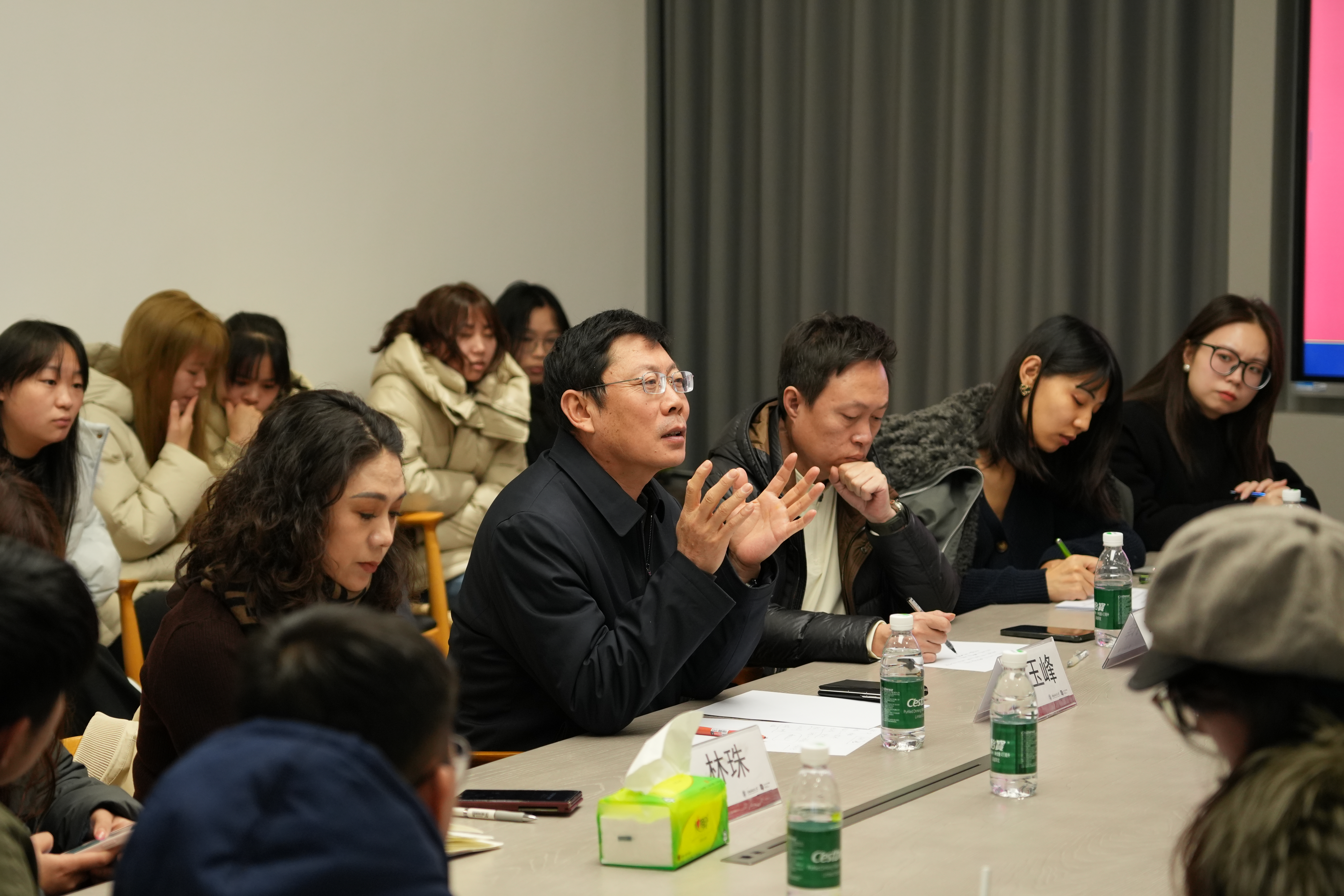 师生座谈由学院副院长张三聪主持,相关专业教师、硕士研究生、本科生共30余人参与。与会师生代表围绕汾酒年轻化设计、新生代消费者需求、新品酒类开发、汾酒品牌融入生活、汾酒包装设计等话题展开热烈深入的讨论,同学们从年轻设计师和消费者视角提出诸多前瞻性建议。