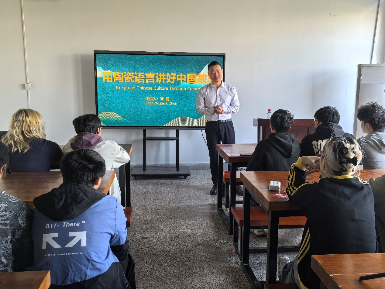 张建是梵耕窑的创始人,陶瓷艺术家,他专研陶瓷柴烧技艺,将唐宋陶瓷的经典设计与审美融入作品之中。他的讲座主题是“陶艺创作与文化传承”。他结合多年来陶艺创作的经验,分享了自己的制瓷过程,强调了手工艺的温度与情感,以及作品背后的故事。他告诉同学们陶艺不仅是技艺的传承,更是文化精神的延续,要深入到陶瓷产地向老艺人学习传统技法,尝试将现代设计理念融入作品创作之中。