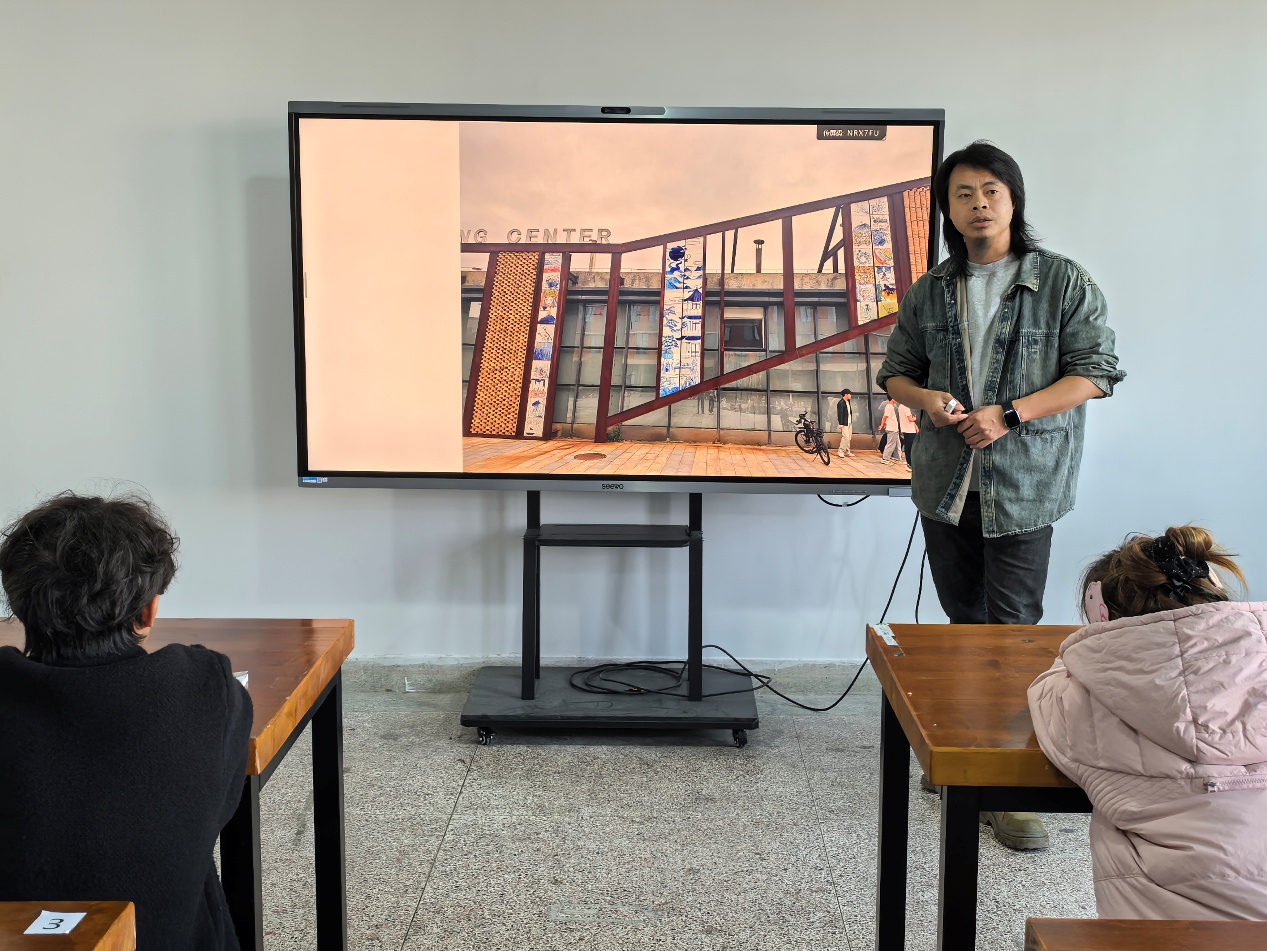 徐青是陶瓷非遗传承人,陶瓷艺术家,7080陶艺家协会会长,2025年景德镇市“五一劳动奖章”获得者。此次受邀来到环境陶艺的课堂为学生们带来了“环境陶艺创作与研究”的讲座。课堂中他分享了关于陶艺创作与设计的理念、方法,他的陶艺作品致力于体现当代审美和精神追求,通过高辨识度的符号化构图与现代感的造型把传统的青花语言融入当代环境空间,创作出了独树一帜的陶瓷作品。