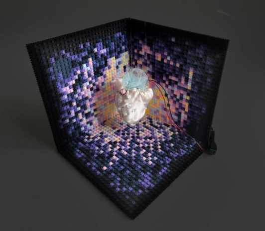 上图为指导老师吕思训发表开幕致辞,作品展以“感官剧场”为结构线索,打破传统观看方式,力图通过视觉、听觉、触觉、嗅觉等多重感知通道,引导观者在直觉与思辨间自由穿梭。流星代表时间的压缩奇观,信用卡揭示现代社会中的消费身份,牡丹花则承载东方文化的美学深意。学生们以装置艺术为媒介,将三种意象融为一个多维度的创作空间,使符号的表层意义在互动中不断裂变、生长,挑战观众的感知与思维界限。