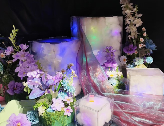 2025年6月6日上午,设计艺术学院2023级公共艺术专业学生在设计艺术学院2号展厅,举办了以“刹那·符号·永恒——感官的星轨”为主题的装置艺术作品展。本次展览由公共艺术大二学生共同策划实施,围绕“流星”“信用卡”“牡丹花”三组富有象征意义的元素,展开跨越物质与感知边界的沉浸式艺术实验。